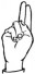 На ћирилици написано МИЉАН ЈЕЛЕНКОВИЋ састоји се из 15 слова [?]. Исписано ћириличном једноручном азбуком за глувонеме: